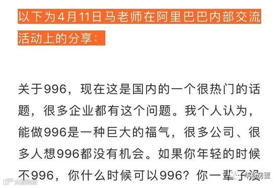 最近996的话题很火,就是马云鼓励年轻人早九点上班晚九点下班,然后一周上六天班,因为能做996是一种巨大的福气啊。