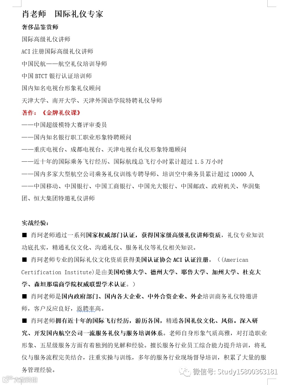 师资优选:国际涉外商务礼仪_肖老师