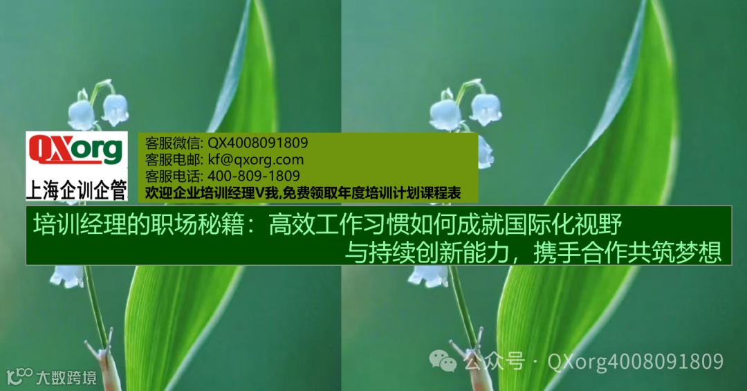 您有任何培训需求,只需轻点左下角的“阅读原文"即可方便地提交您的培训诉求。我们的专业客服团队会在收到您的诉求后的两个工作日内与您取得联系,确保您的需求得到迅速响应.如果您急于寻求帮助,也可直接通过客服微信号:QX4008091809与我们取得联系.
