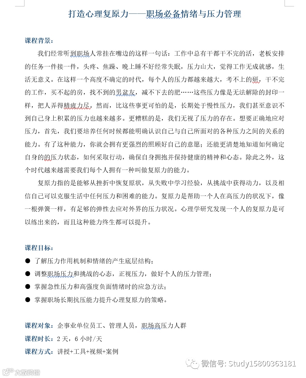 汪老师:职场必备情绪与压力管理 上海企训企管