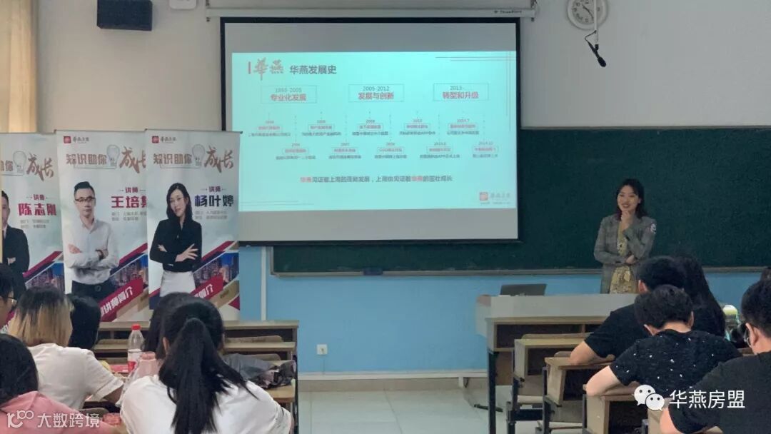 宣讲会现场,培训经理丁颖为大家介绍了华燕房盟的基本情况,从公司概况、企业文化、企业员工培养模式、企业目前的发展状况及前景与同学们作了详尽的分享。互动环节中,同学们也就自己所关心的实习地点、工作环境问题、行业发展问题等与华燕房盟的授课老师们进行了互动交流。