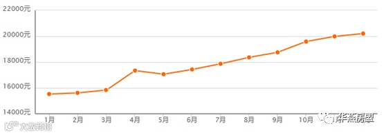 南京的房价同样从年初开始一路飙涨,从1月的15527元/平方米,到12月的20209元/平方米。