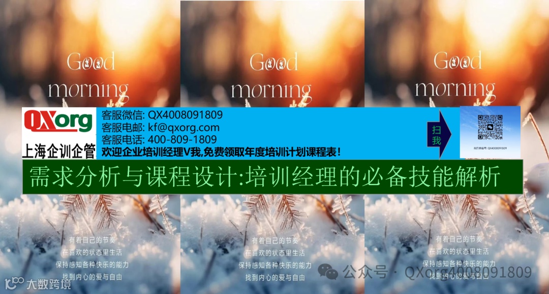 您有任何培训需求,只需轻点左下角的“阅读原文"即可方便地提交您的培训诉求。我们的专业客服团队会在收到您的诉求后的两个工作日内与您取得联系,确保您的需求得到迅速响应.如果您急于寻求帮助,也可直接通过客服微信号:QX4008091809与我们取得联系.