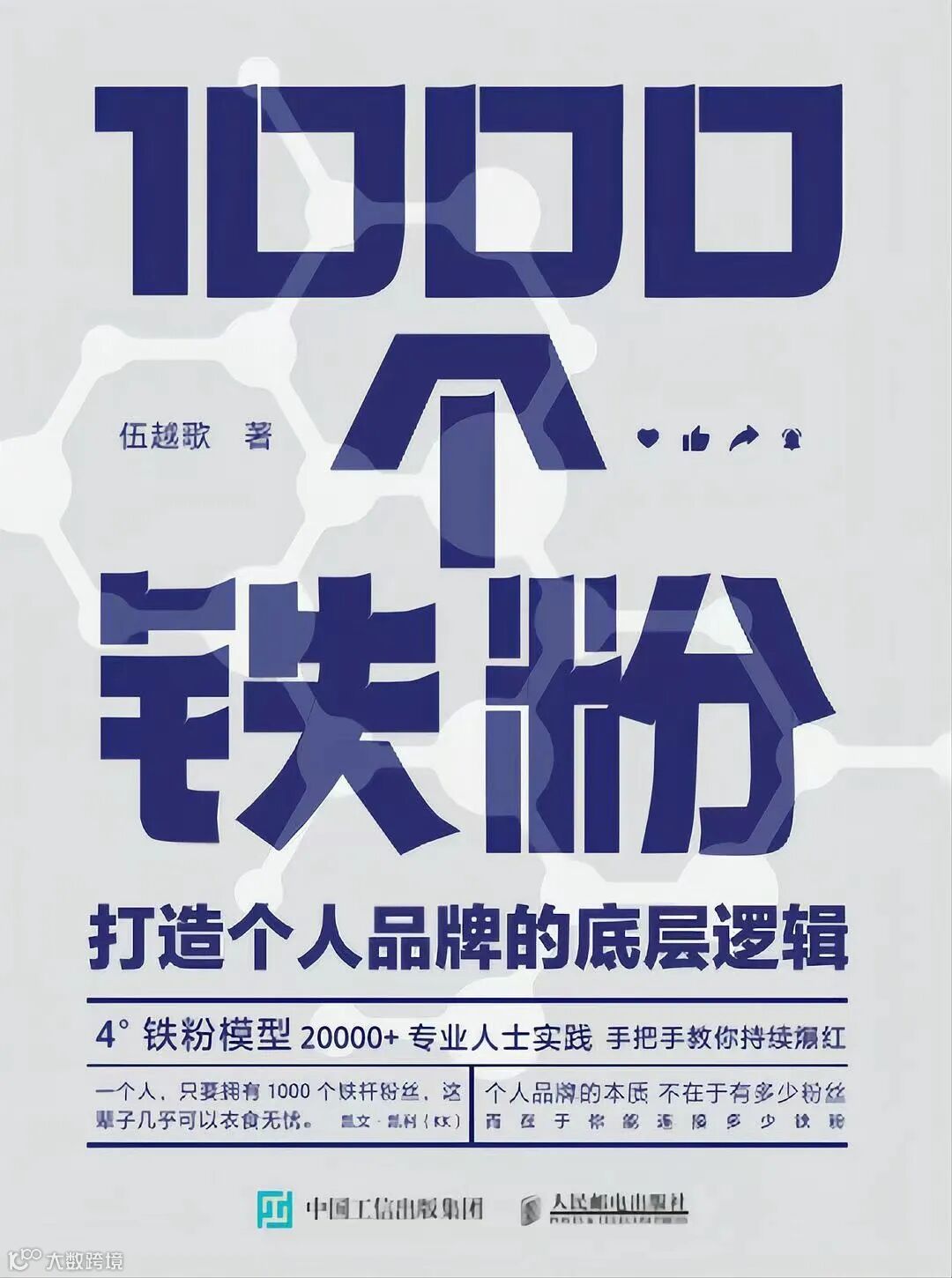 推荐理由: 《1000个铁粉》是一本从根源上助普通人在新时代打造个人品牌的事业崛起之书。 凯文·凯利说: “一个人,只要拥有1000个铁杆粉丝,这辈子几乎可以衣食无忧。 ”书中不仅有成功案例,还结合理论给出具体对策,可助你少走弯路,从底层打通个人品牌的发展路径,真正获取属于自己的1000个铁杆粉丝,实现个人品牌价值最大化。 个人品牌的本质不在于有多少粉丝,而在于你能连接多少铁粉! 4°铁粉模型,20000+专业人士实践,手把手教你持续爆红。