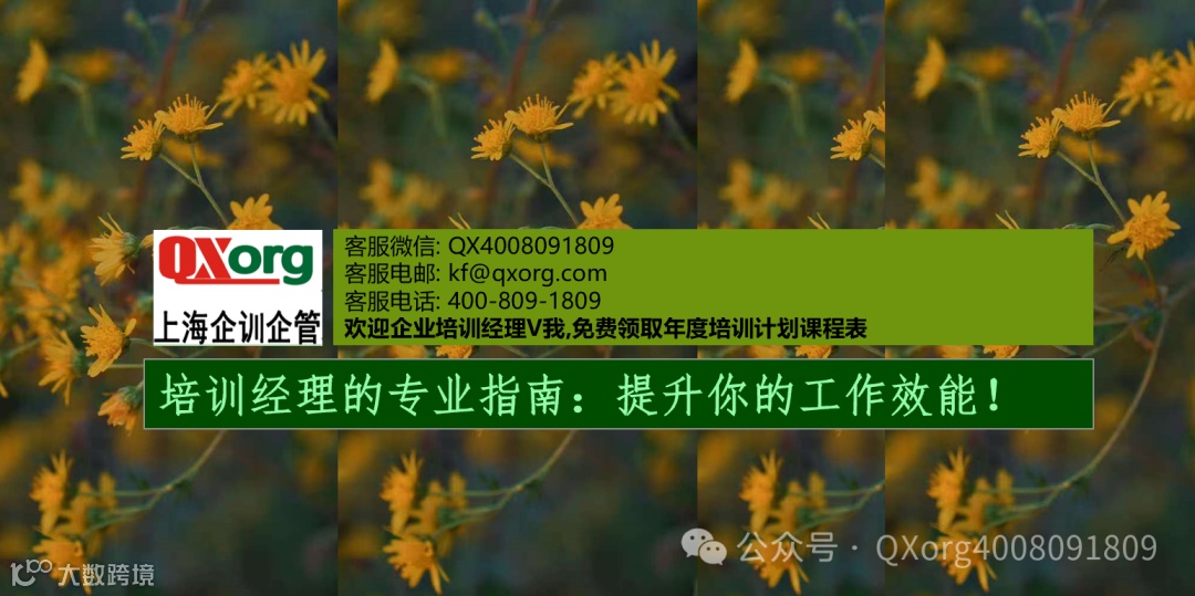 您有任何培训需求,只需轻点左下角的“阅读原文"即可方便地提交您的培训诉求。我们的专业客服团队会在收到您的诉求后的两个工作日内与您取得联系,确保您的需求得到迅速响应.如果您急于寻求帮助,也可直接通过客服微信号:QX4008091809与我们取得联系.