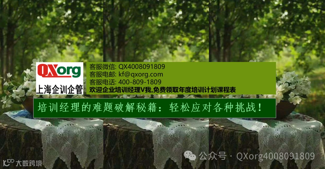 您有任何培训需求,只需轻点左下角的“阅读原文"即可方便地提交您的培训诉求。我们的专业客服团队会在收到您的诉求后的两个工作日内与您取得联系,确保您的需求得到迅速响应.如果您急于寻求帮助,也可直接通过客服微信号:QX4008091809与我们取得联系.