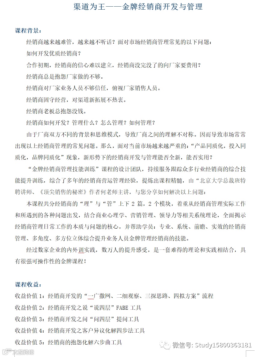 何老师: 渠道为王-金牌经销商开发与管理 上海企训企管