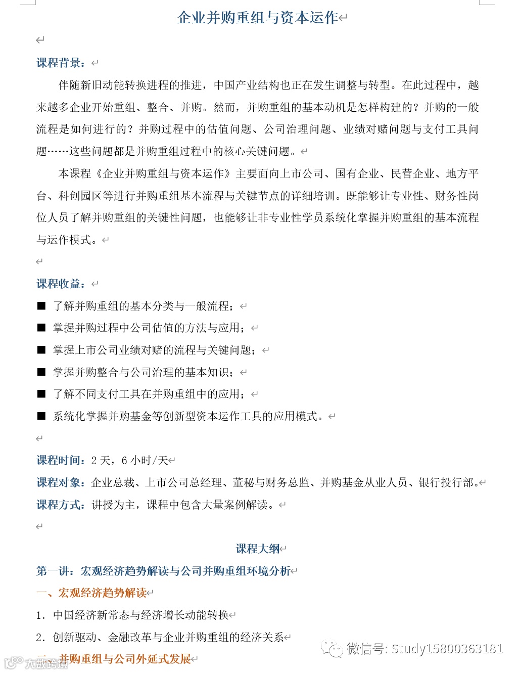 吴老师:企业并购重组与资本运作 上海企训企管