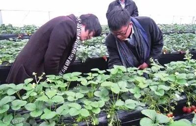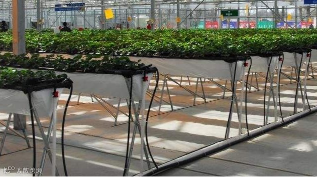 立体无土栽培的草莓,住的是基质,喝的是营养液,不仅产量提升,品质也随之提高。使用绿色有机肥料与生物农药,种出的草莓更健康。同时,将草莓种植在距地面50cm高的栽培槽中进行无土栽培,不用弯腰便可以摘到草莓,与常规方法种植的草莓相比较,颜色鲜亮、口感好,而且洁净卫生,更适合观光农业的发展需要。