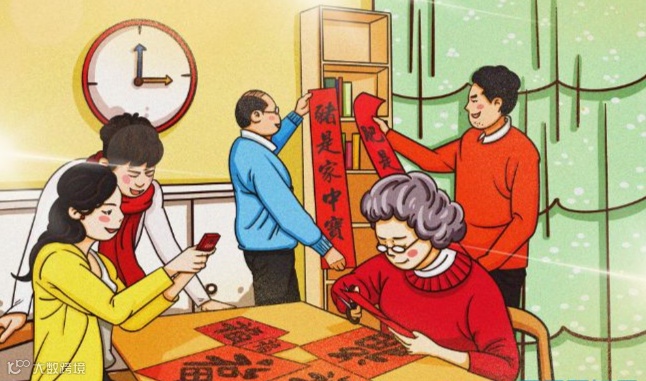 【贴春联】
