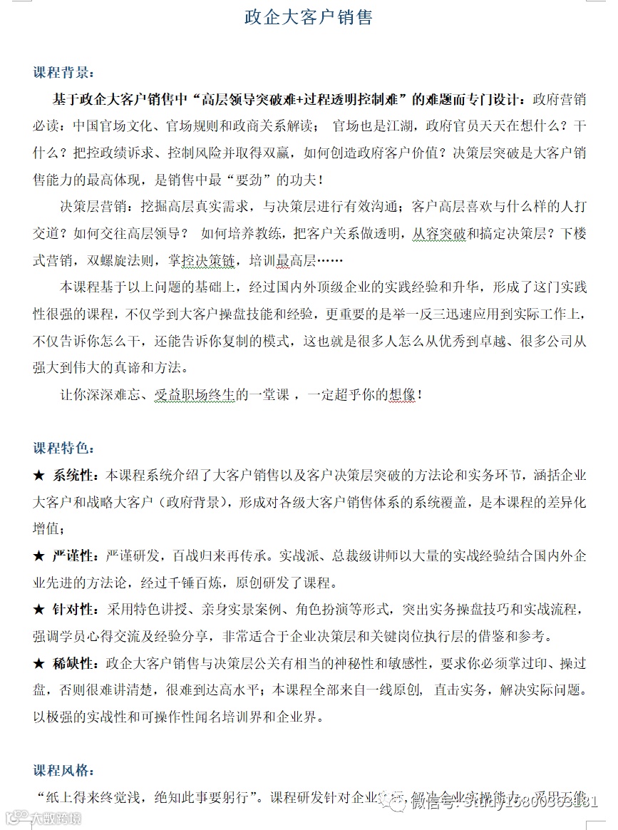 黎老师: 政企大客户销售 上海企训企管