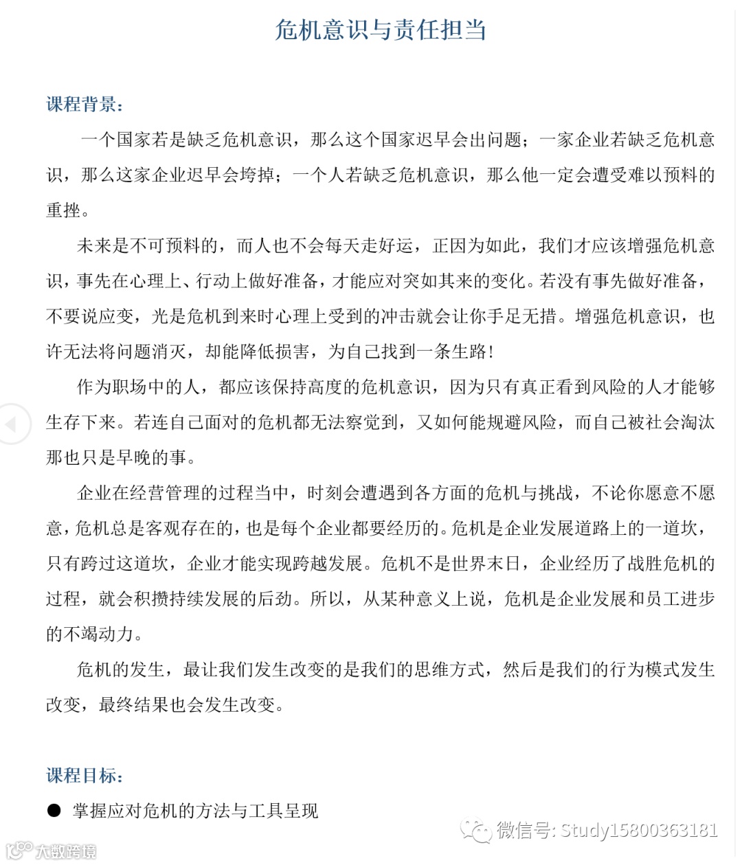 吴老师:危机意识与责任担当 上海企训企管