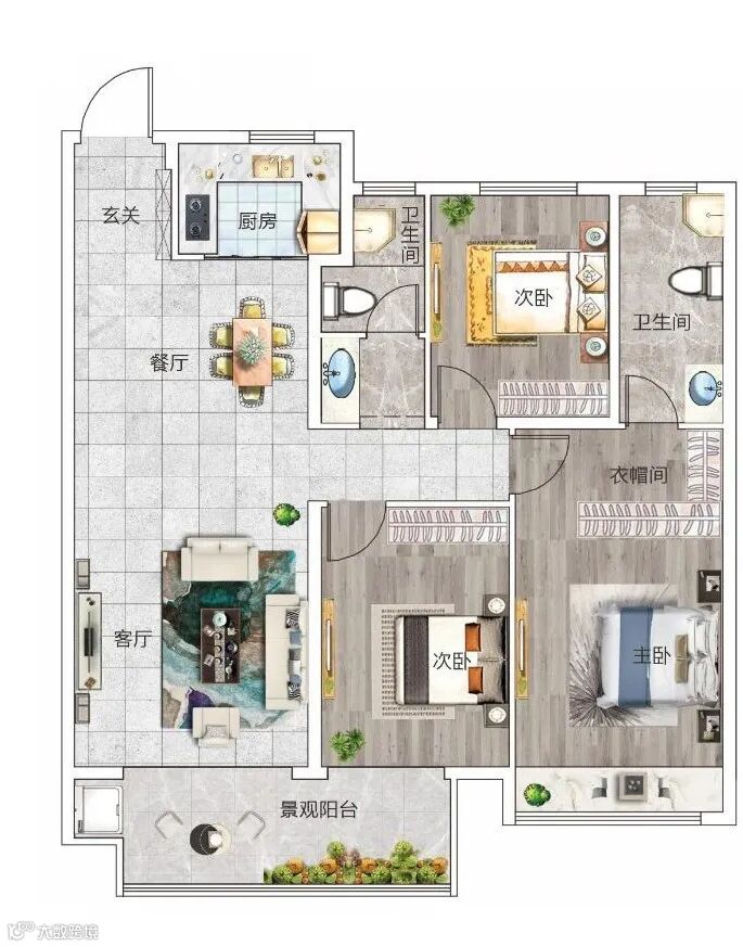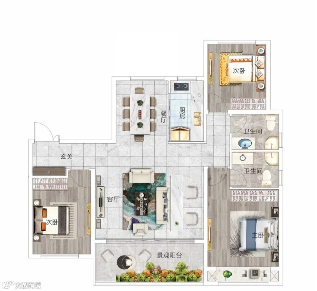 客餐厨一体,连接南向景观大阳台