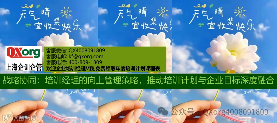 您有任何培训需求,只需轻点左下角的“阅读原文"即可方便地提交您的培训诉求。我们的专业客服团队会在收到您的诉求后的两个工作日内与您取得联系,确保您的需求得到迅速响应.如果您急于寻求帮助,也可直接通过客服微信号:QX4008091809与我们取得联系.