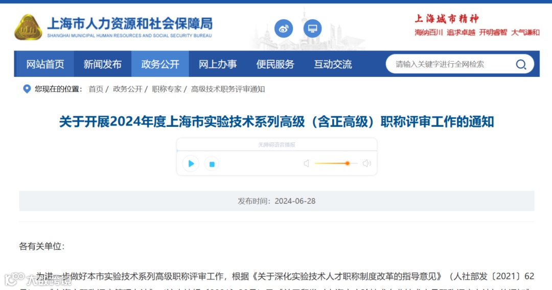 关于开展2024年度上海市实验技术系列高级(含正高级)职称评审工作的通知