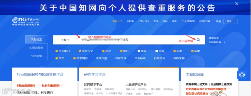 2、在搜索框中输入你要检索的题目,然后点击后方的放大镜或是按enter键