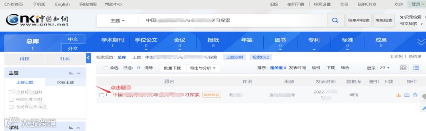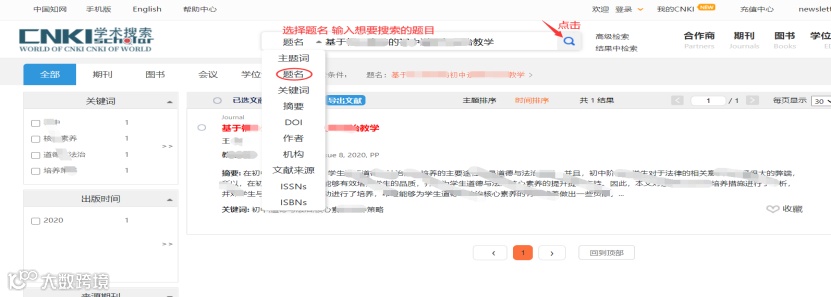 3、选择题名(不选也可以)在搜索框中输入你要检索的题目,然后点击后方的放大镜或是按enter键
