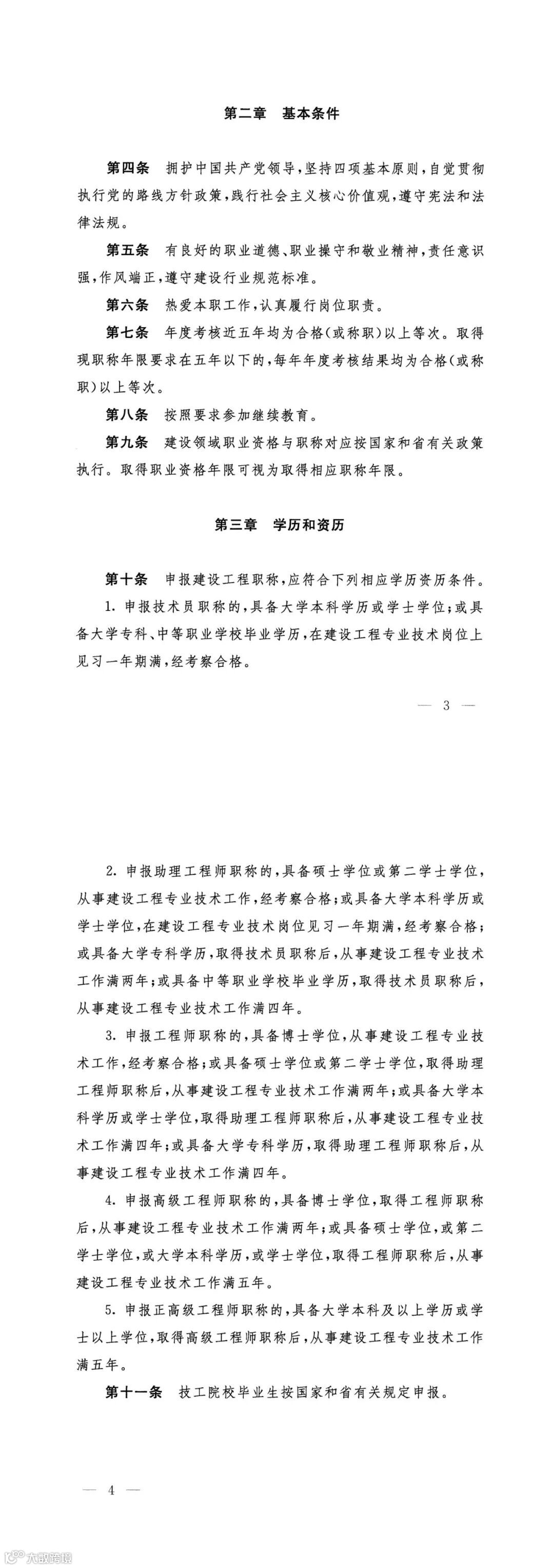 三、建设工程职称标准条件