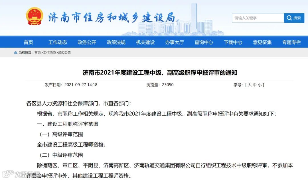 原文阅读 济南市住房和城乡建设局 通知公告 济南市2021年度建设工程中级、副高级职称申报评审的通知 (jinan.gov.cn)