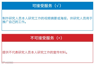 1. 一般而言,这种服务应仅包括旨在改善研究人员自己工作展示或推广的管理和文案编辑任务。具体的研究工作(即研究的设计和实施,大多数情况下包括数据收集 和分析)都应当由研究人员自己亲自完成。