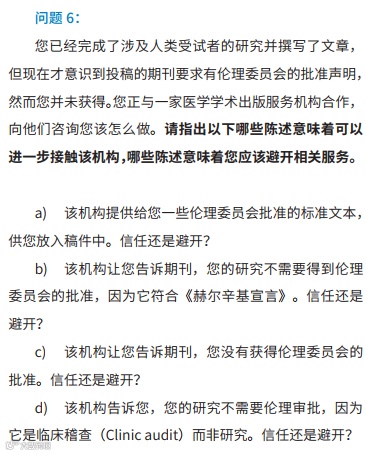 第二部分问题着重于医学领域和涉及人类受试者、组 织或数据临床研究活动。答案和解释见附录 2。