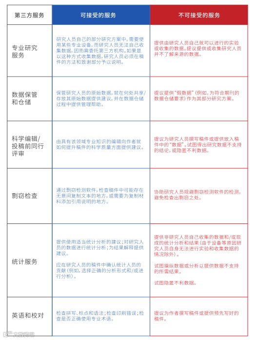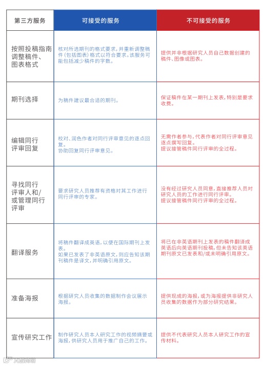 关于学术出版第三方服务可接受和不可接受的服务汇总