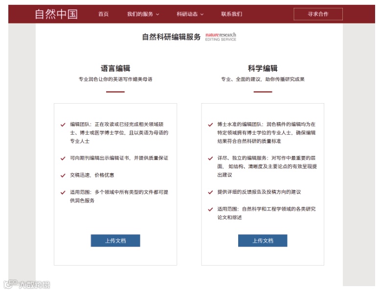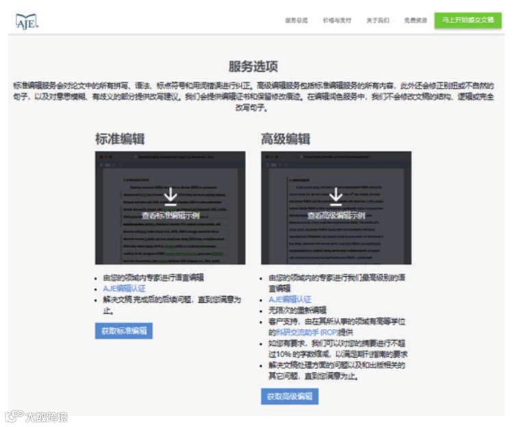 施普林格·自然旗下自然科研与AJE提供的编辑服务示例