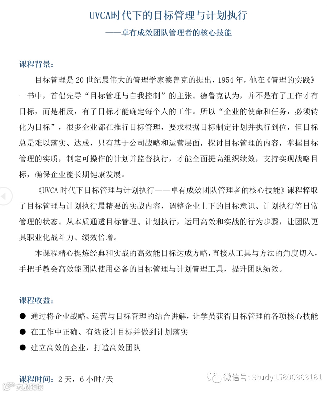 何老师: UVCA时代下的目标管理与计划执行 上海企训企管