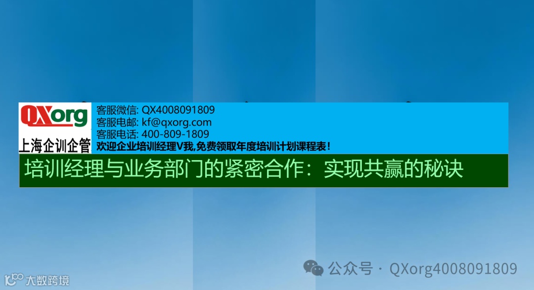 您有任何培训需求,只需轻点左下角的“阅读原文"即可方便地提交您的培训诉求。我们的专业客服团队会在收到您的诉求后的两个工作日内与您取得联系,确保您的需求得到迅速响应.如果您急于寻求帮助,也可直接通过客服微信号:QX4008091809与我们取得联系.