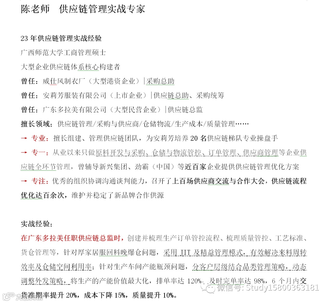 师资推荐:供应链管理实战_陈老师