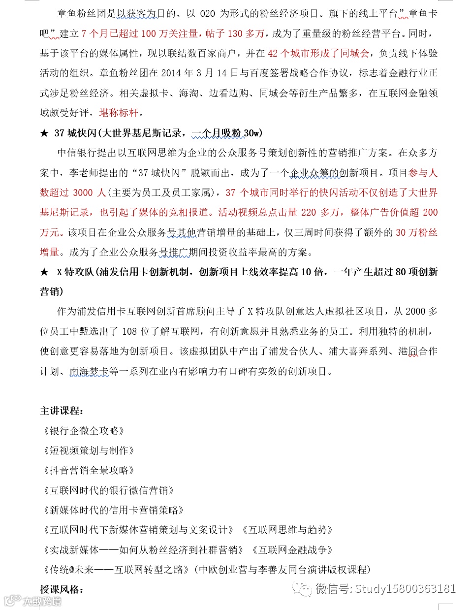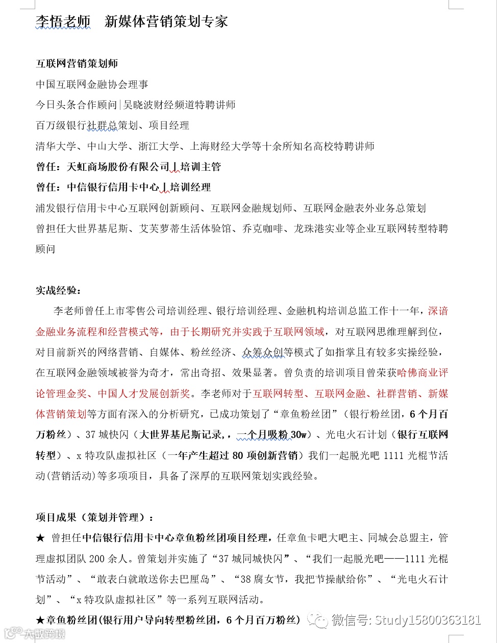 师资优选: 新媒体营销策划_李老师 上海企训企管