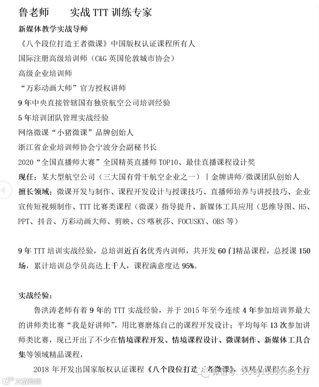 师资优选:实战TTT训练_鲁老师 上海企训企管
