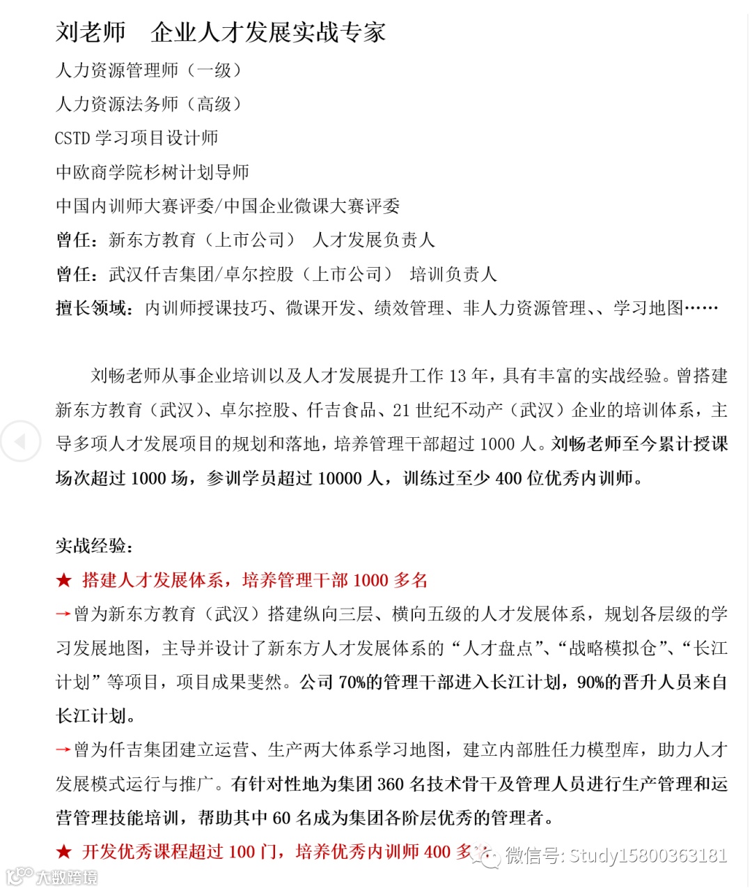 师资优选: 企业人才发展实战_刘老师 上海企训企管