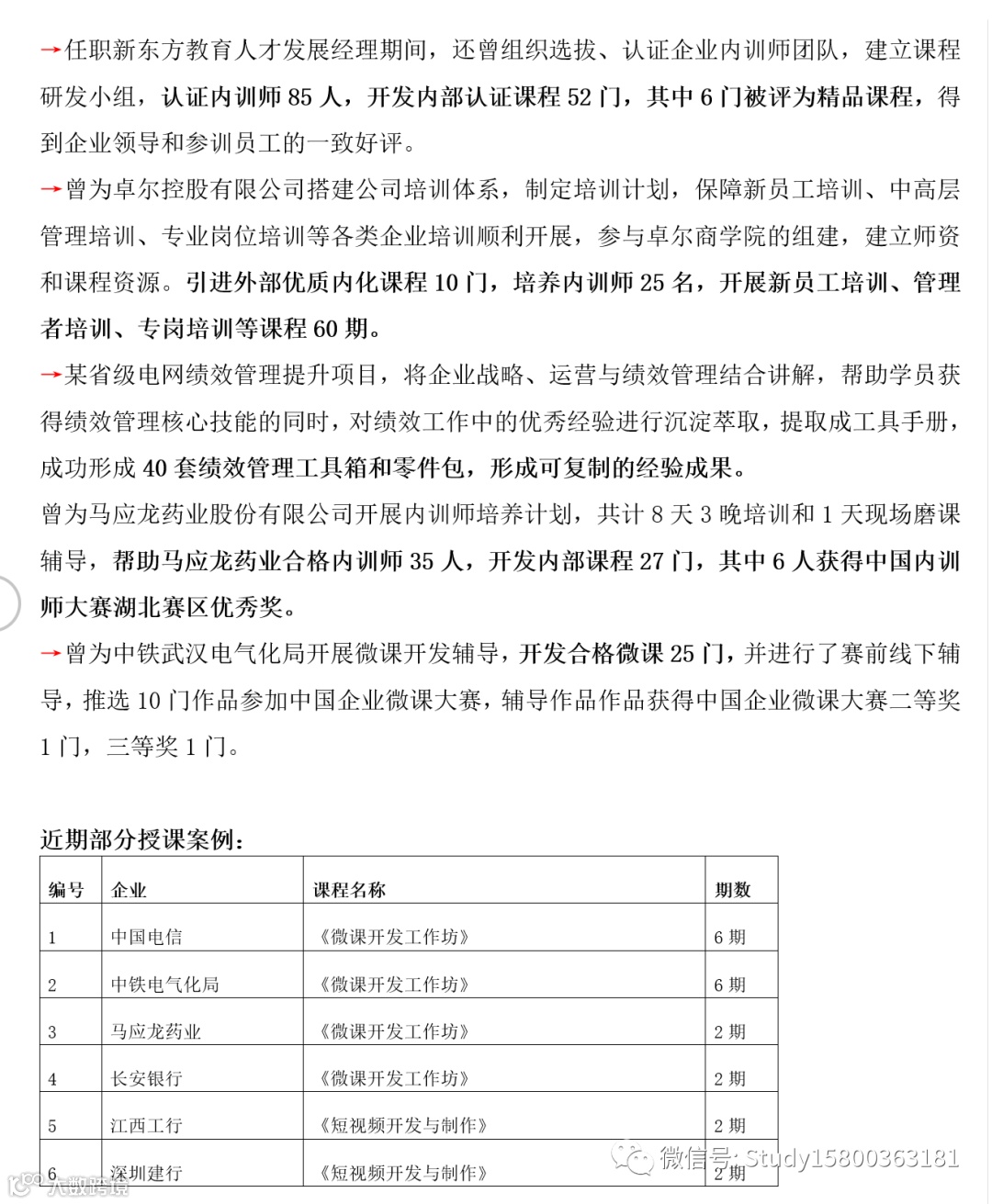导读:师资简介师资行业目录001. 生产管理( 80位+)师资表获取,请回复:601002. 人力资源(80位+)