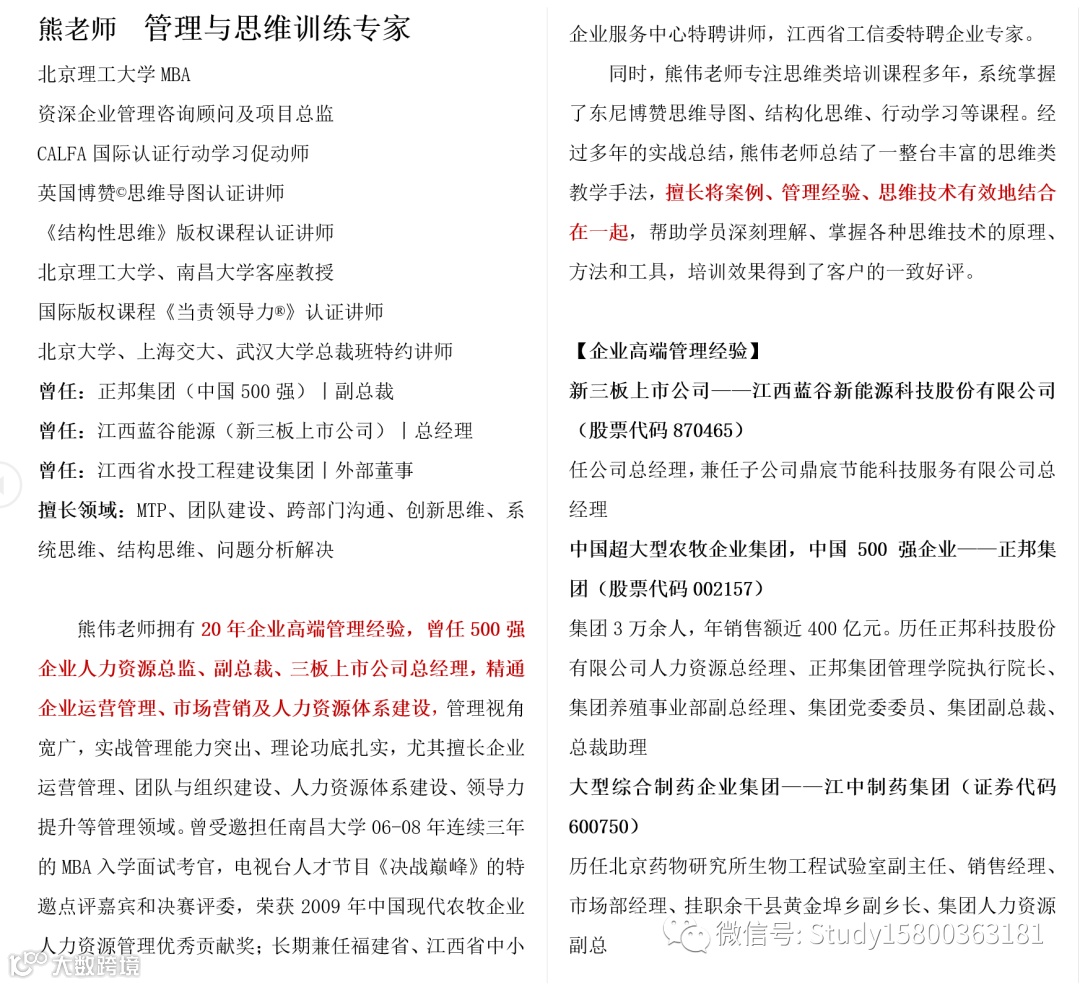师资优选:管理与思维训练_熊老师 上海企训企管