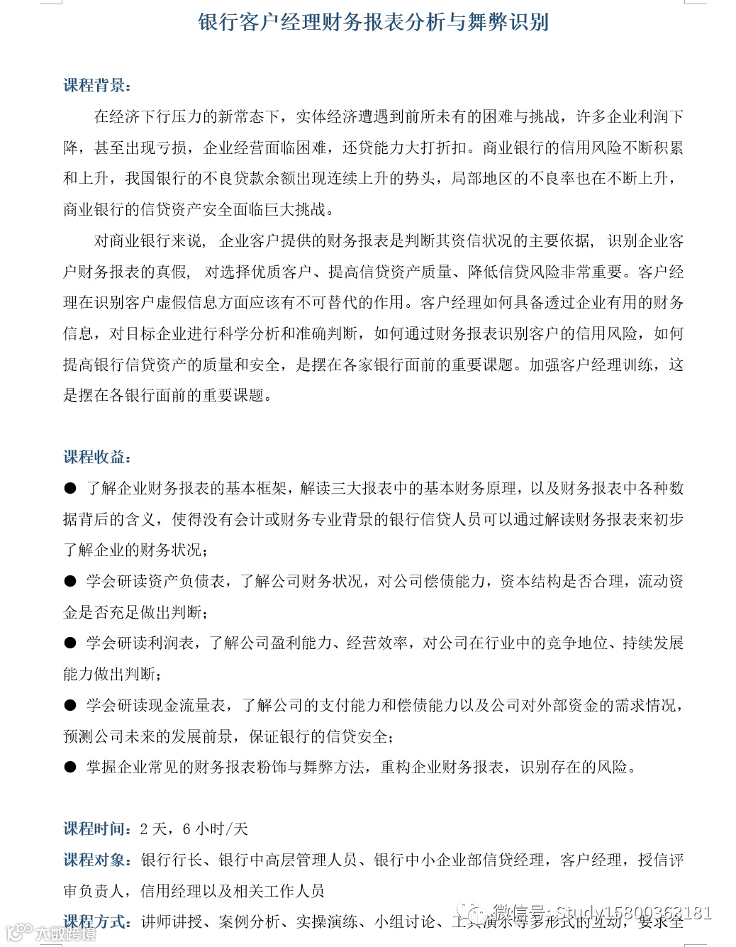 刘老师:银行客户经理财务报表分析 上海企训企管