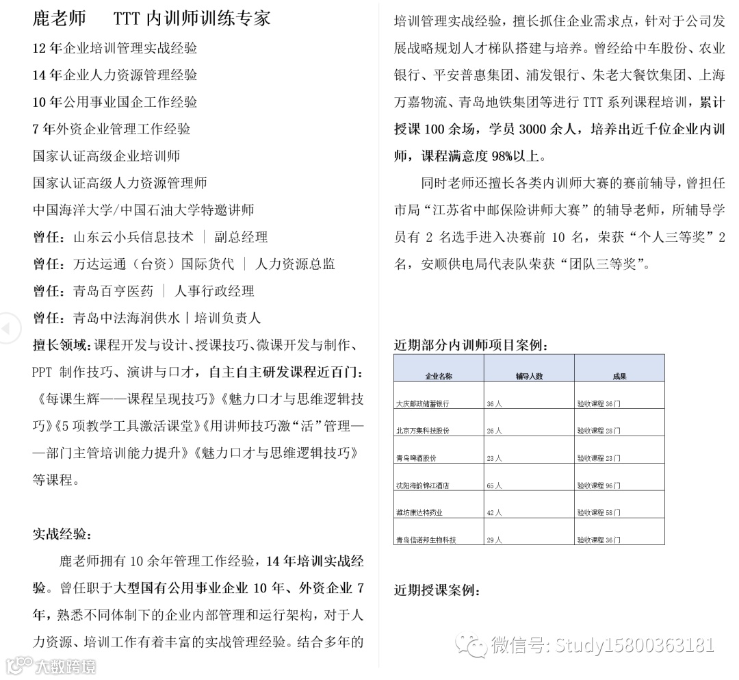 师资优选:  TTT内训师训练_鹿老师 上海企训企管
