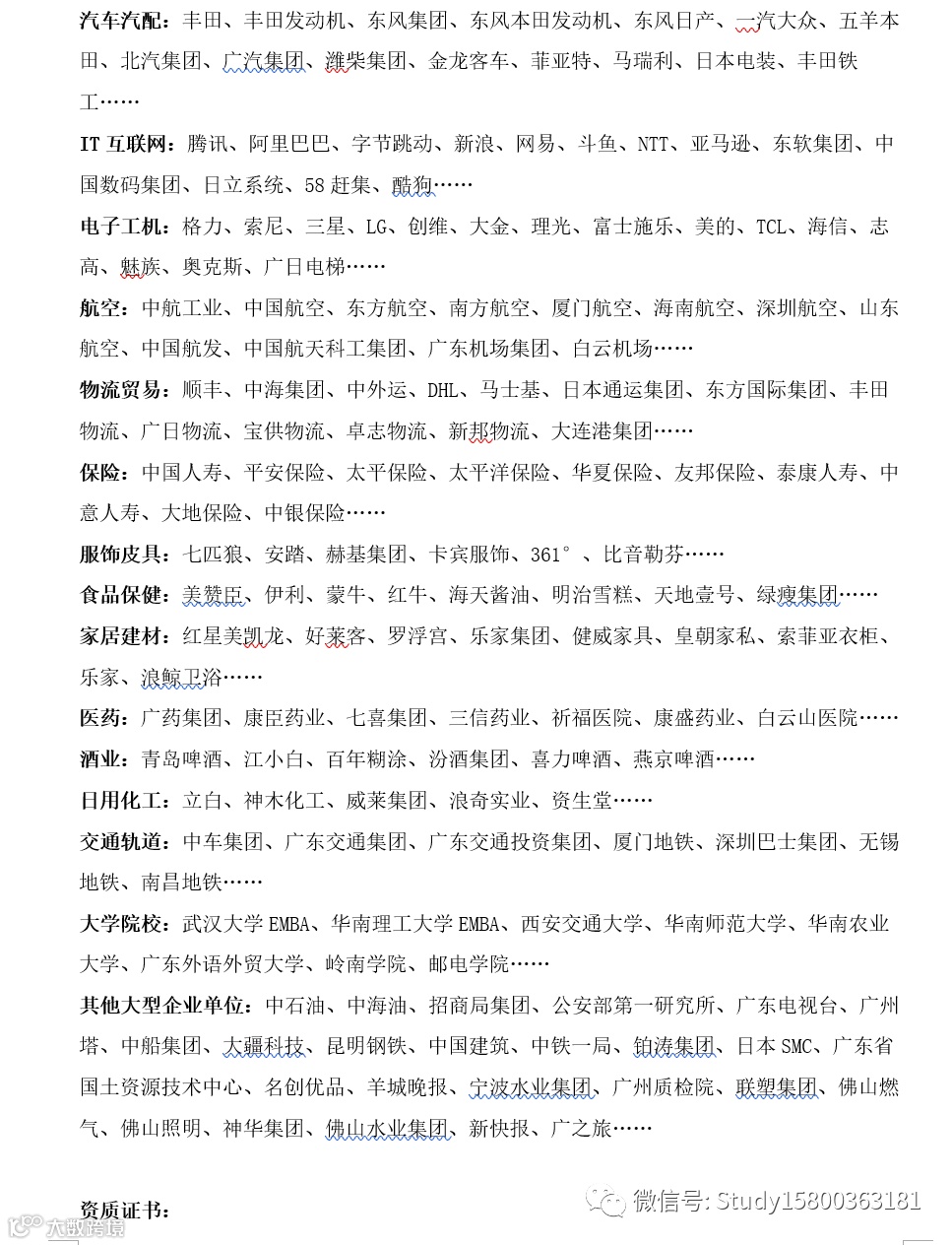 师资行业目录