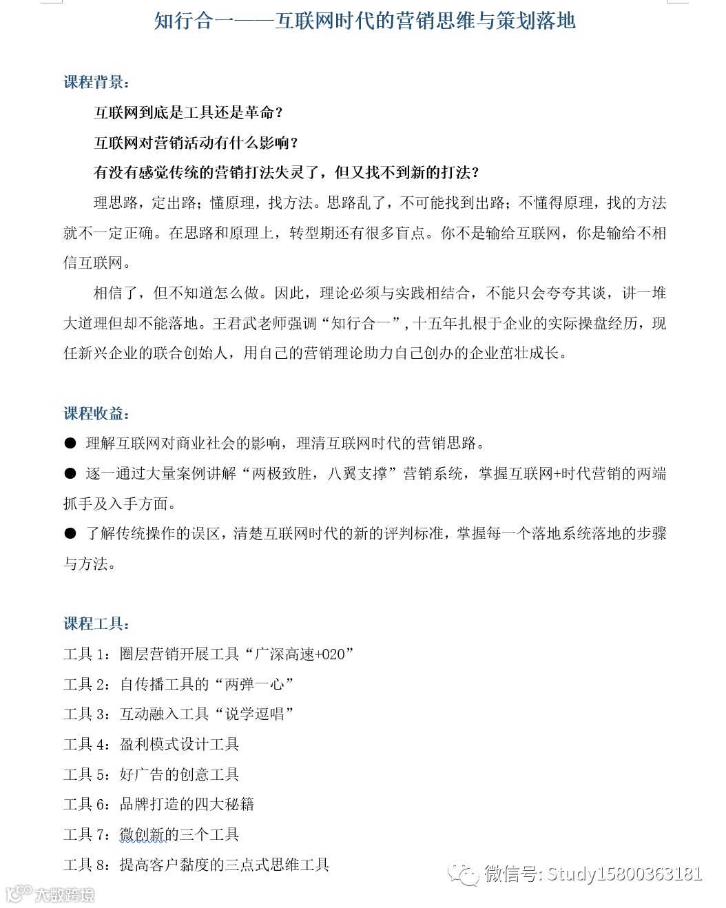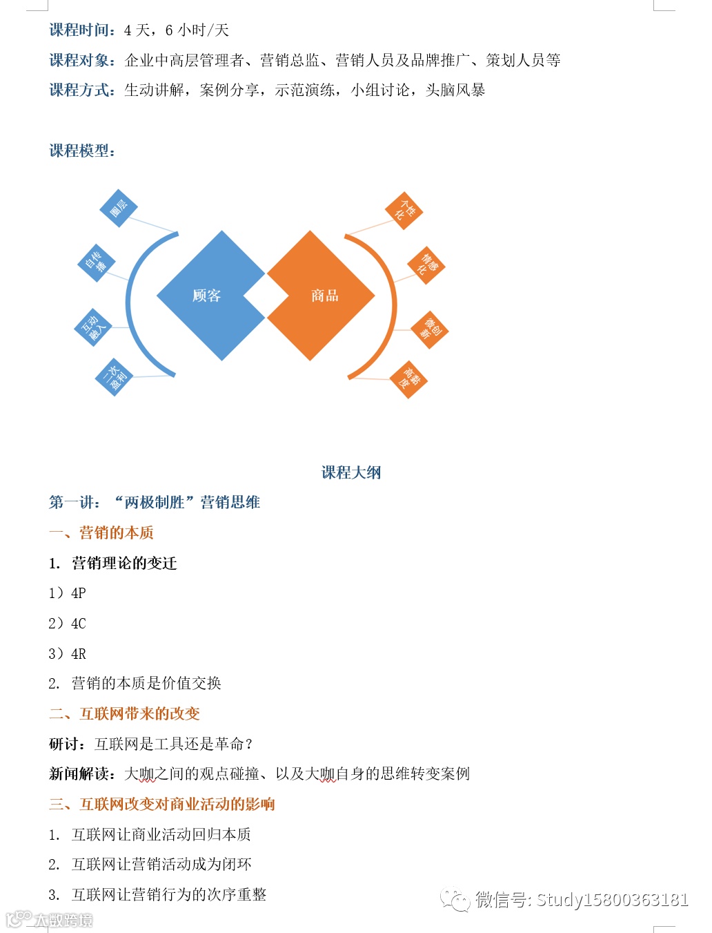 王老师: 互联网时代的营销思维与策划落地 上海企训企管
