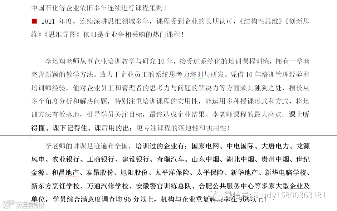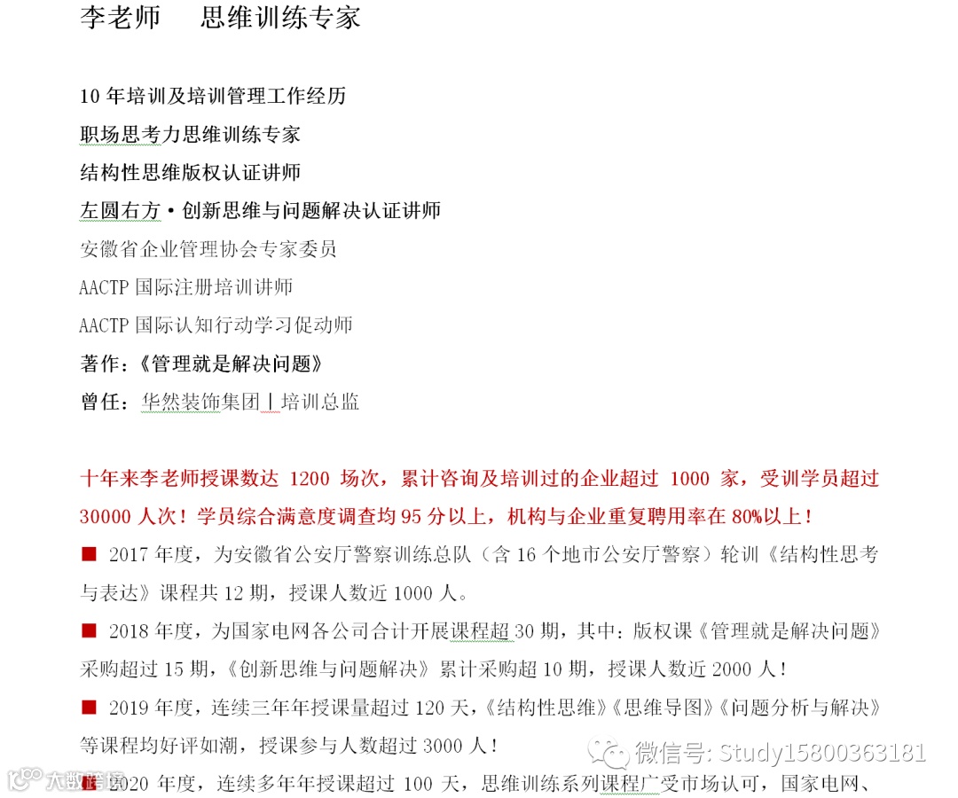 师资优选:思维训练_李老师 上海企训企管