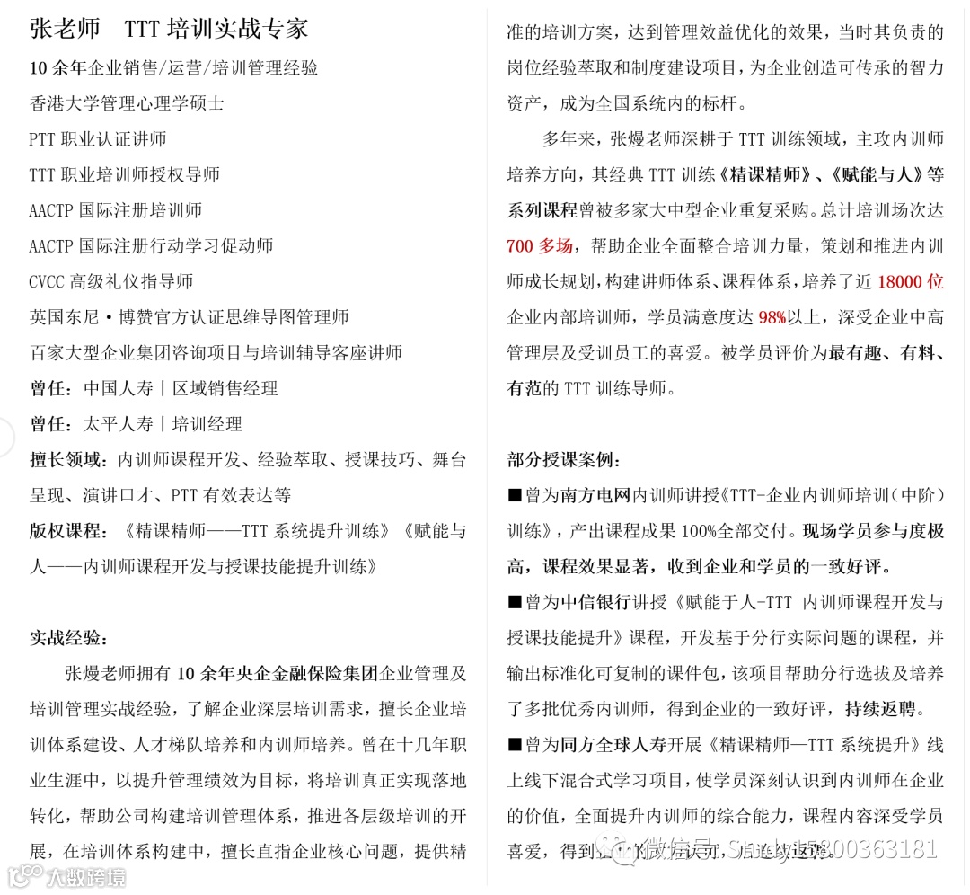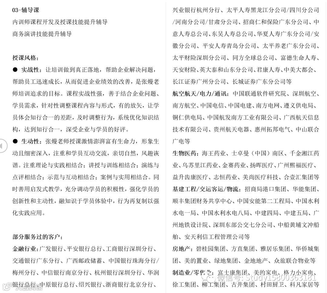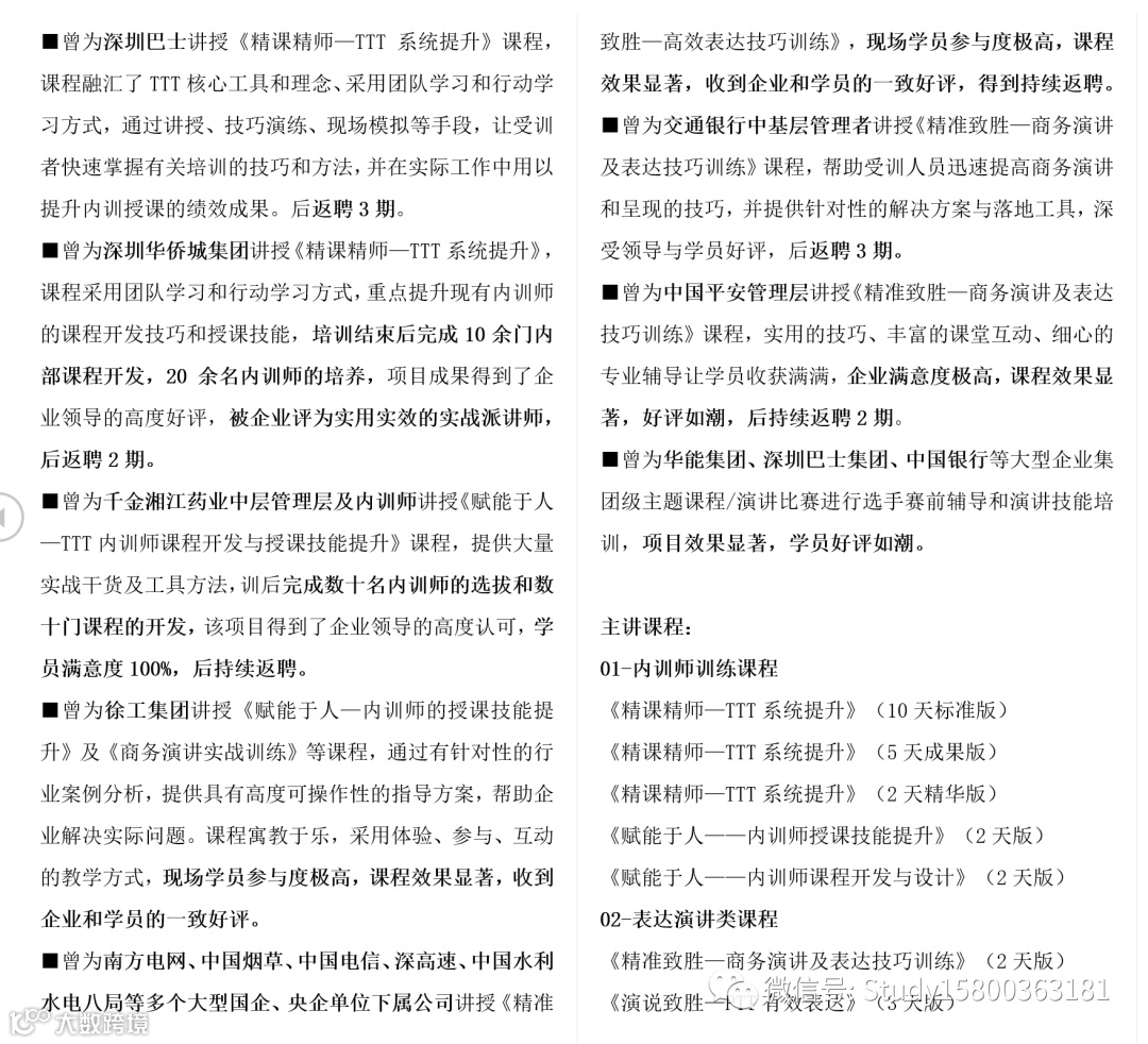 导读:师资简介师资行业目录001. 生产管理( 80位+)师资表获取,请回复:601002. 人力资源(80位+)