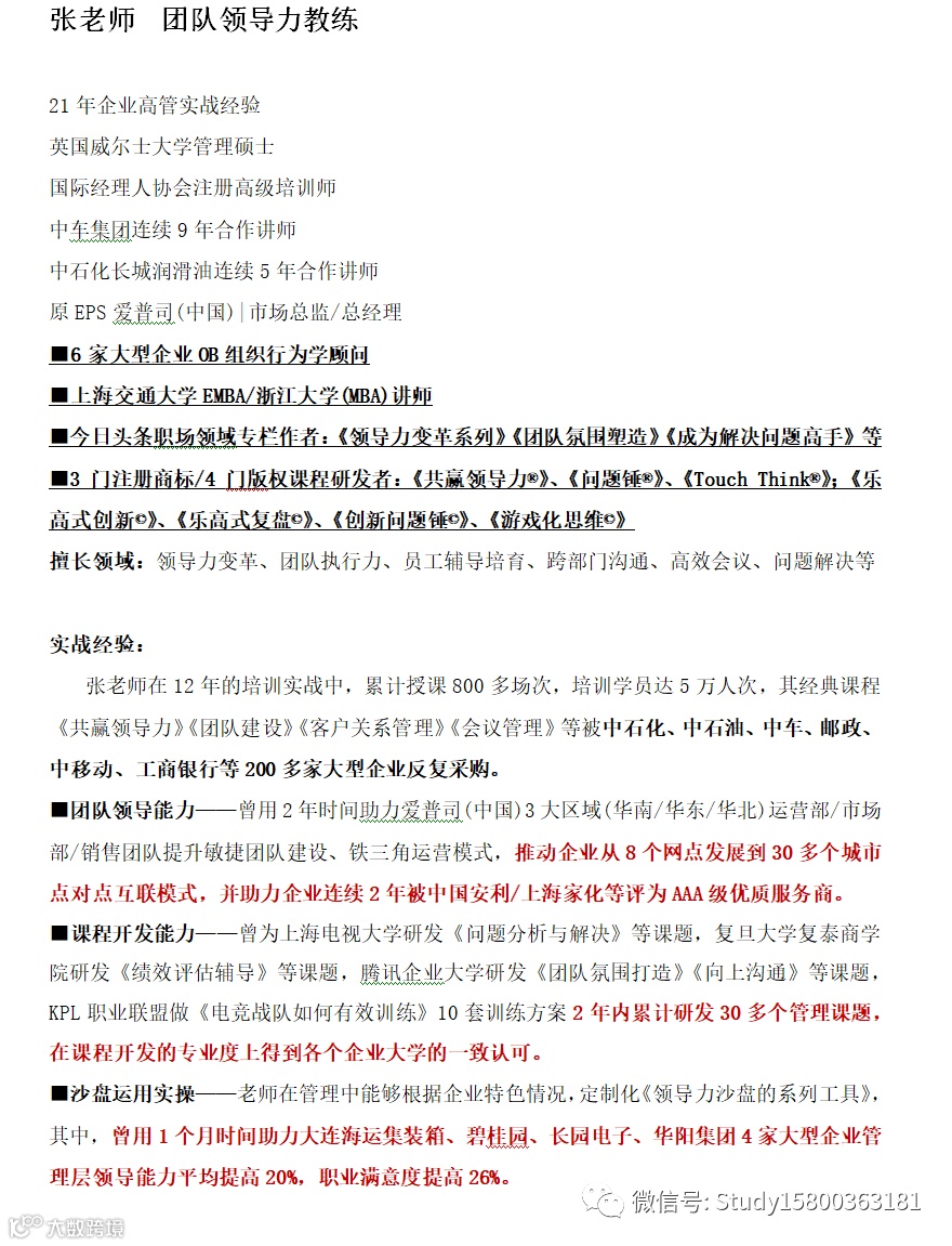 师资优选: 团队领导力_张老师