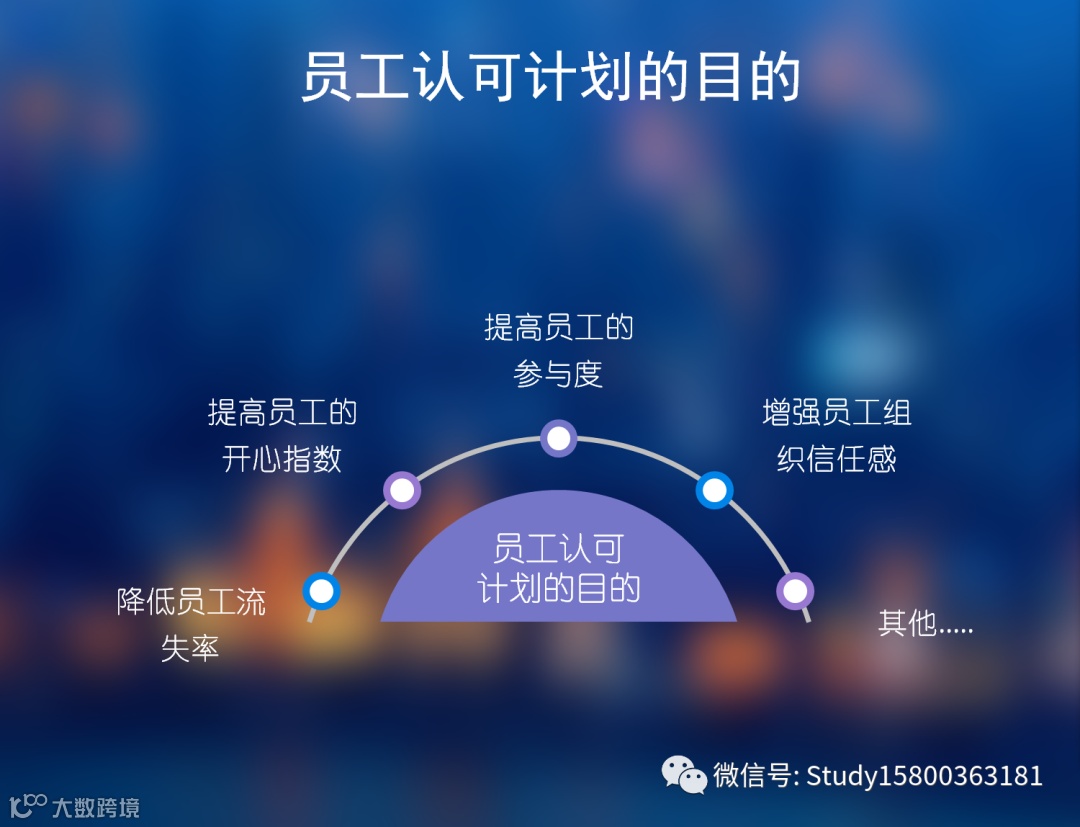 员工认可计划的目的主要有:降低员工流失率、提高员工的开心指数、提高员工的参与度、增强员工组织信任感等等.