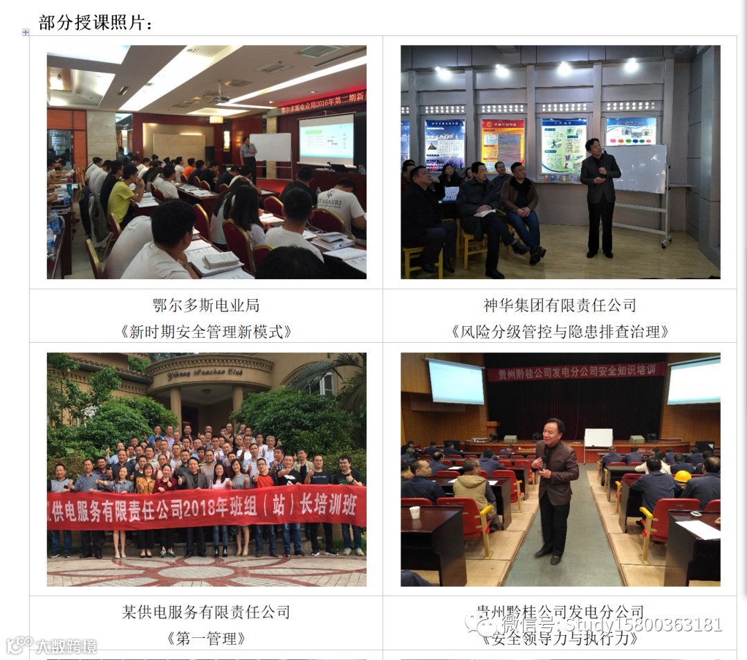 » 为5大电力集团所属企业培训《安全文化》等课程200余场次:其中蒙东集团返聘10+期,甘电投集团返聘10+期