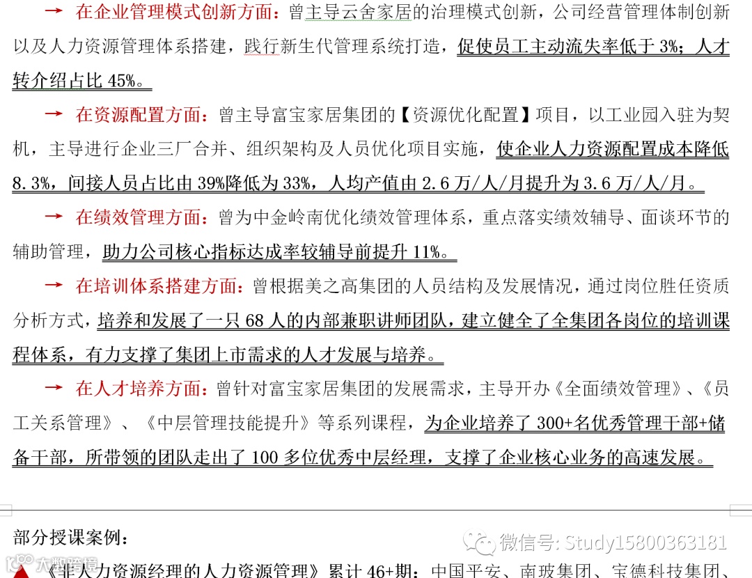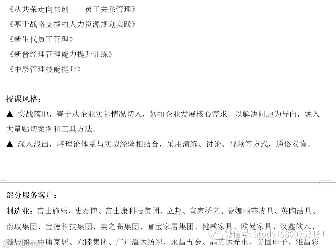 导读:师资简介师资行业目录001. 生产管理( 80位+)师资表获取,请回复:601002. 人力资源(80位+)