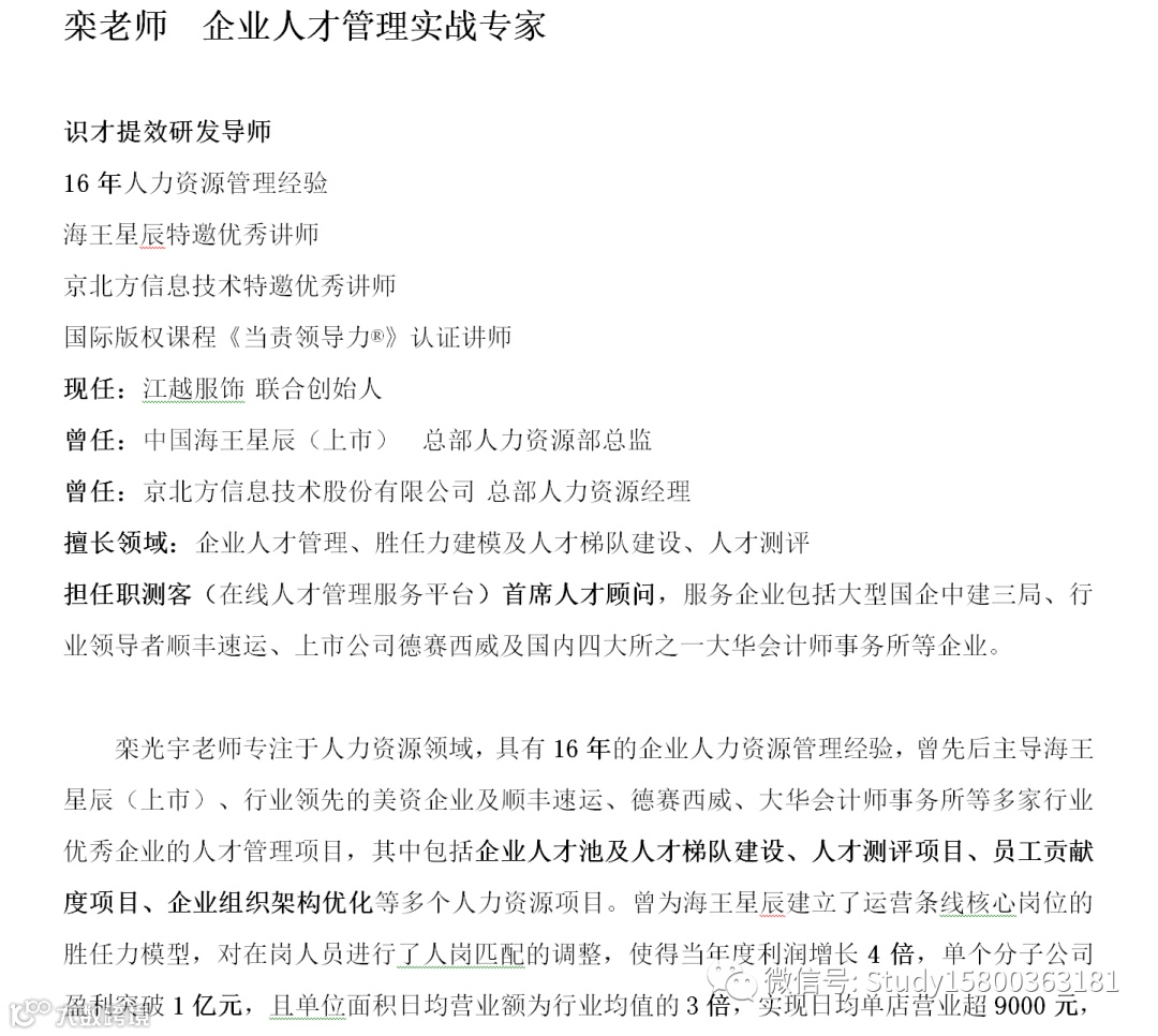 师资优选:企业人才管理实战_栾老师 上海企训企管