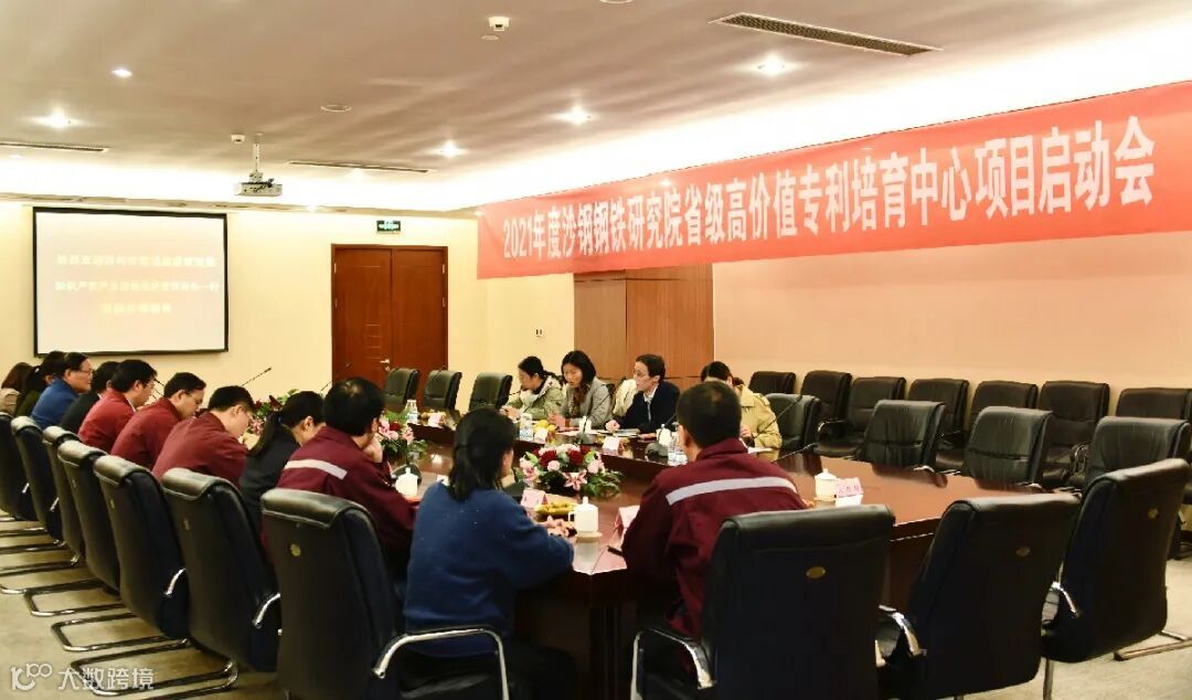 10月22日下午,沙钢钢铁研究院省级高价值专利培育中心项目启动会在沙钢召开。苏州市市场监督管理局知识产权产业促进处处长於亚萍、张家港市市场监督管理局副局长孙跃忠赴沙钢调研指导并出席启动会。沙钢集团有限公司第一副总工程师黄久贵参加会议。