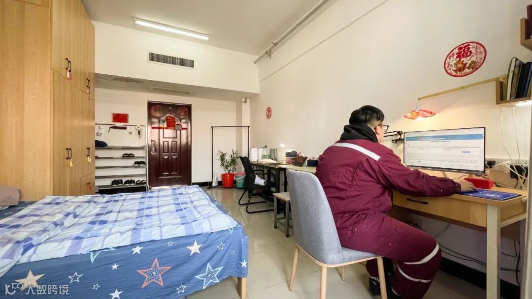 走进沙钢单身公寓房间,一股暖意扑面而来。房间内窗明几净,1.5米宽的单人床、床头柜、高大的衣柜、电脑桌椅等“基础设施”一应俱全,所有家具实木定制,还配备了全新的床垫和床上“四件套”,职工直接“拎包入住”。