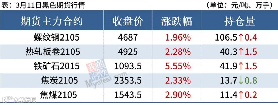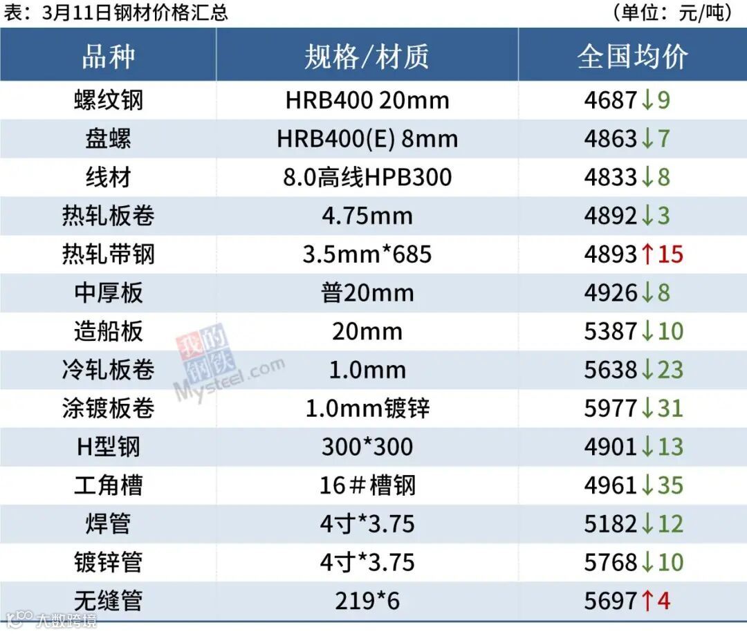 3月11日,国内钢材市场稳中有跌,唐山迁安地区普方坯出厂价涨20报4320元/吨。受恐高情绪影响,11日早盘部分商家继续降价出货,午后黑色期货市场强势反弹,刺激下游终端采购放量,短期钢价有望止跌反弹。