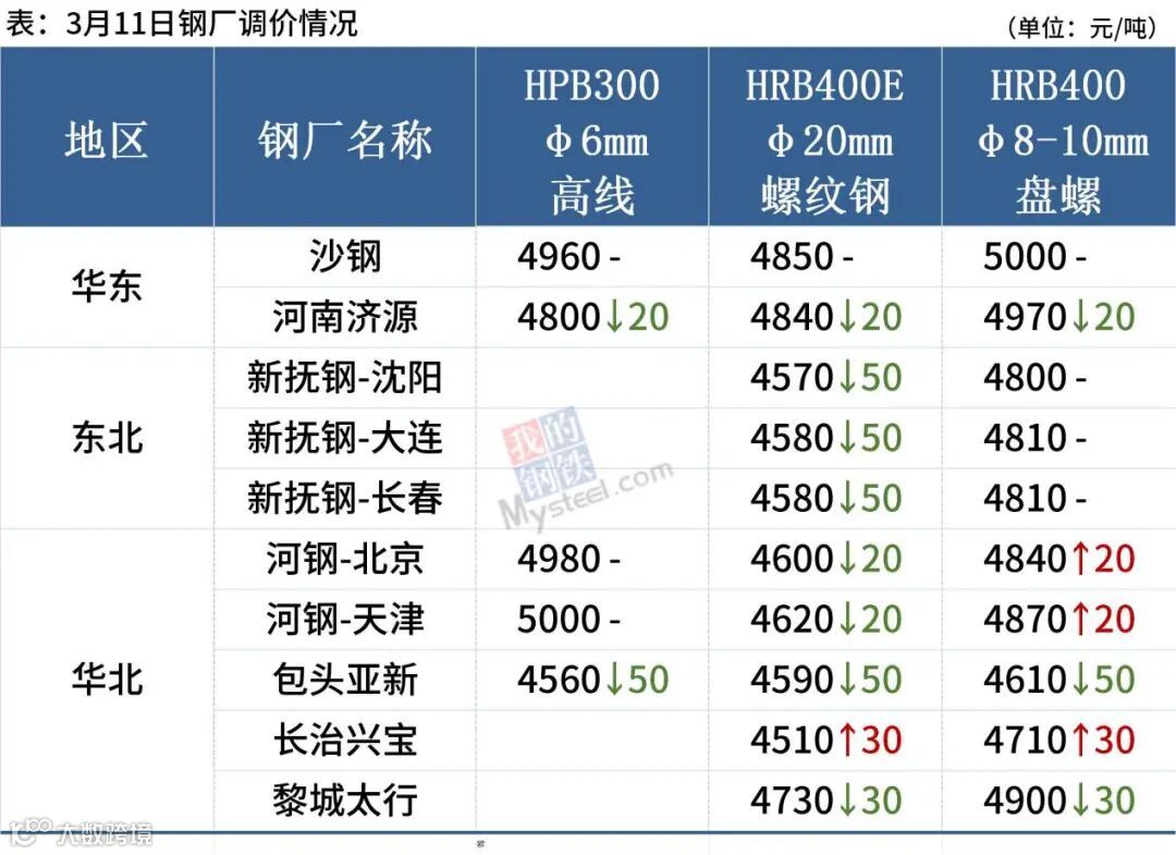 11日,全国累计7家钢厂发布调价信息,累计调整幅度在0-50元/吨。